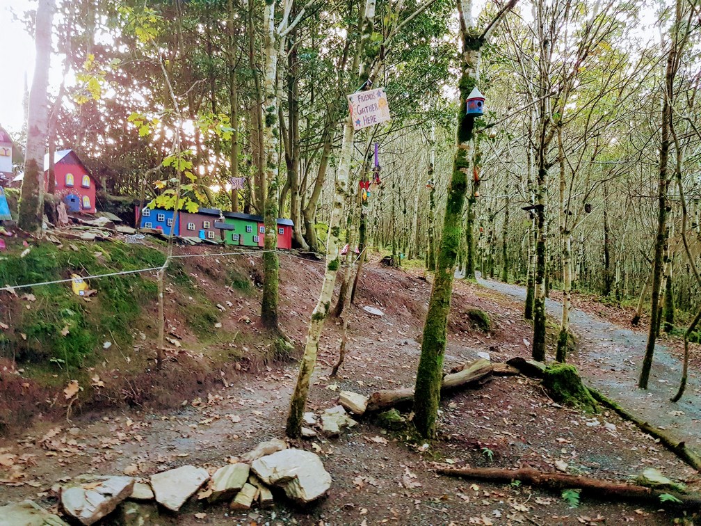 Lackin Hill is situated just outside New Ross. The walk to Lackin Hill starts at the Dunbrody Forest Walk and is fully signposted with large information boards at the start see here. Our Kids love the 5km walk up to the top of Lacken Hill. It’s filled with a large fairy village 100m away from the start and Ourlittlehikers loved every step of this. The route to the top of Lackin Hill is not buggy friendly but is sprinkled with fairy doors painted onto trees to help motivate little legs. There are 4 walking routes available to walk in Lackin Hill.