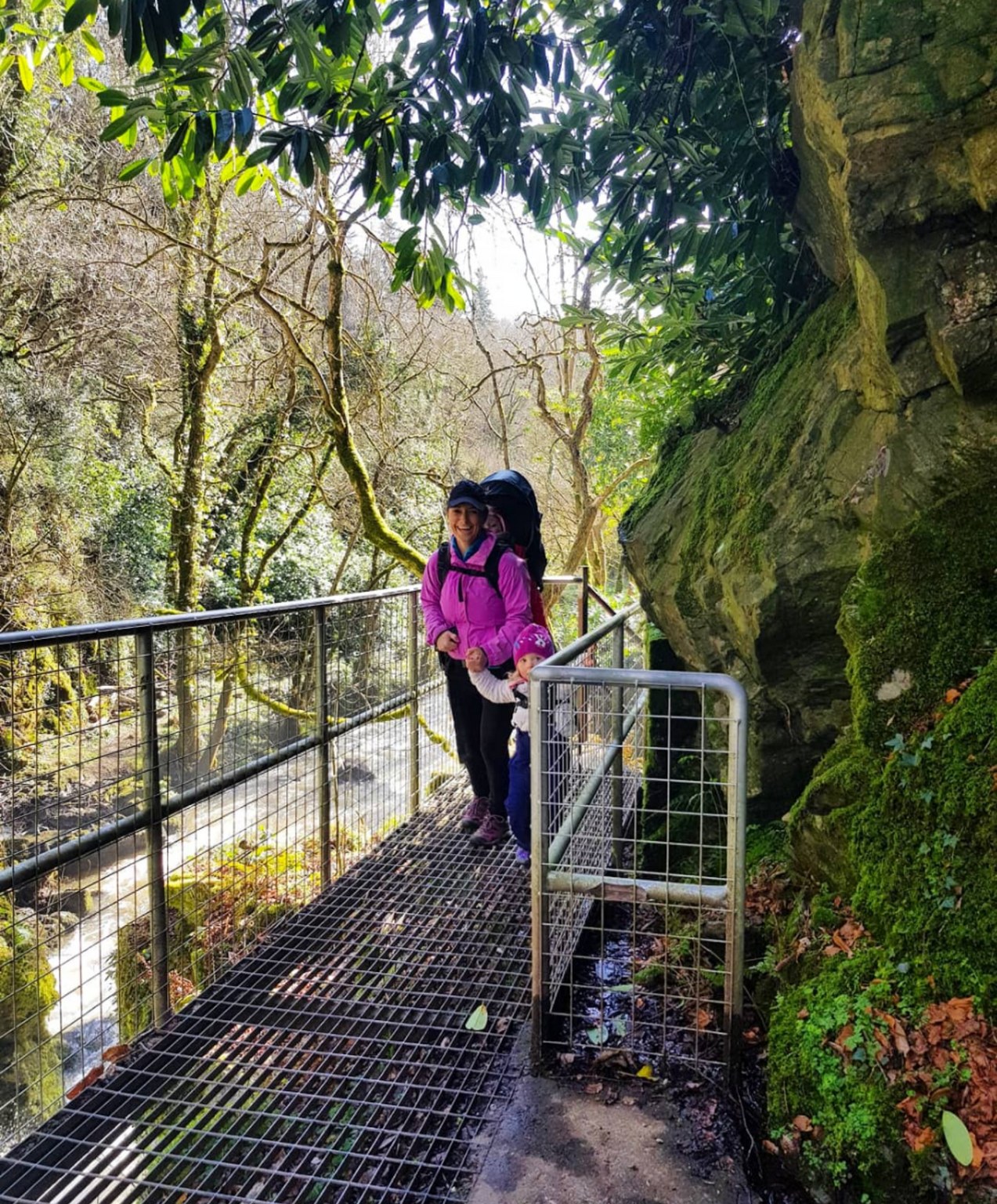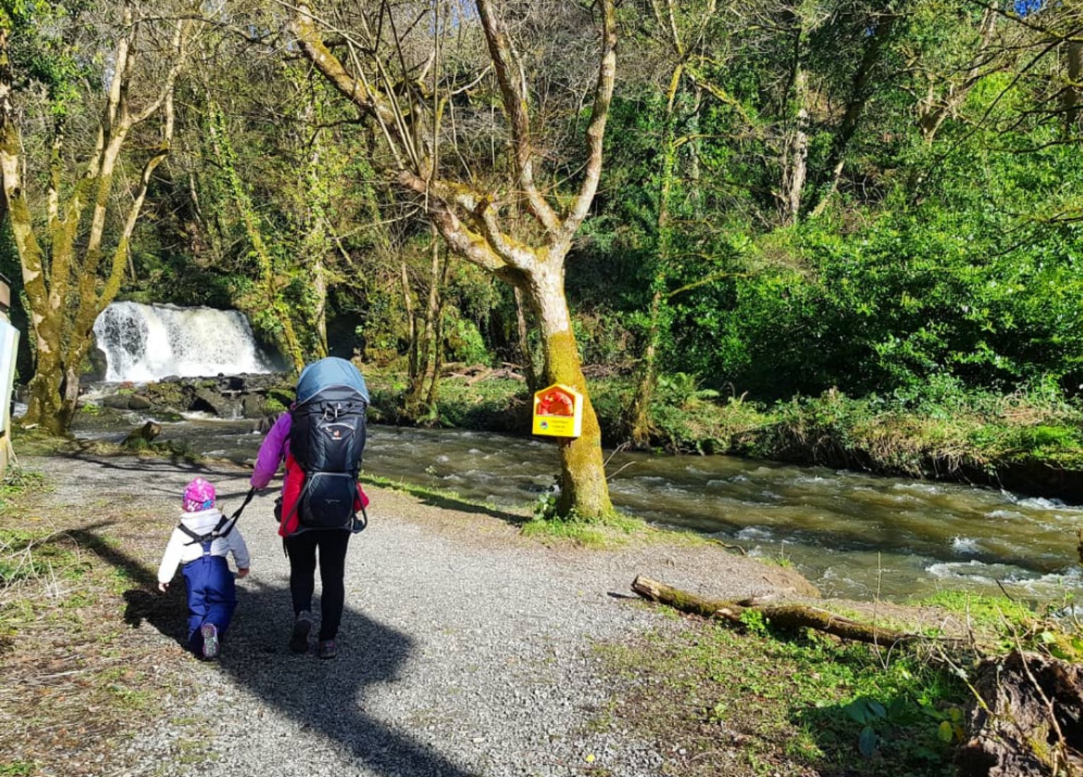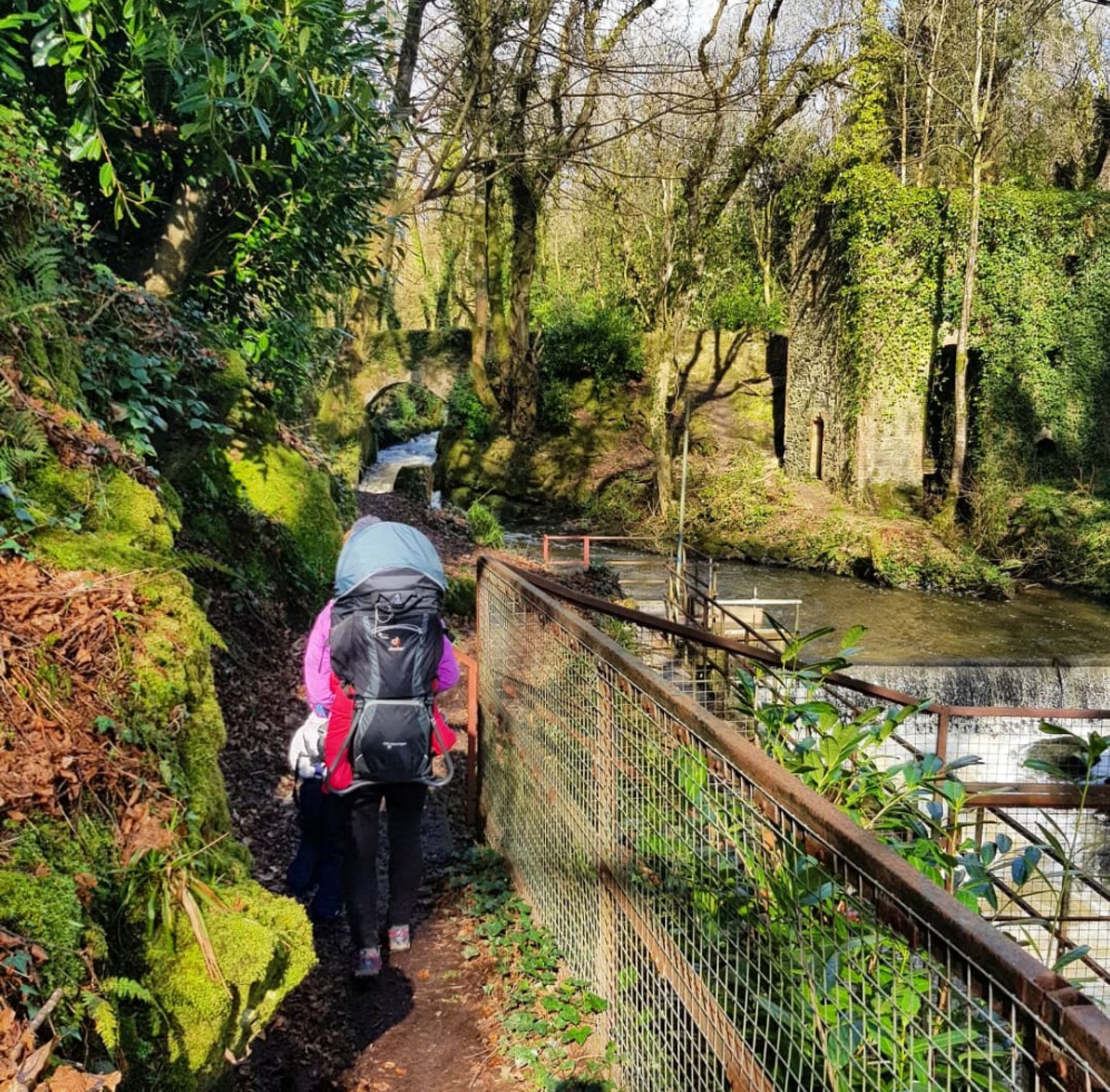 We only recently discovered Edenvale and it was by chance. We drove past the entrance one day and spotted the walk sign, so we decided to explore it. Edenvale is situated between the N11 to Wexford town and Castlebridge. The Walk is through a woodland trail that follows along the River Sow to a water pumping station. If you decide to explore the water plant bring straps to keep the kids safe. It is buggy-friendly until you reach the water plant at the end. A metal platform leads you to the rear of the plant where there are stairs that allows you to walk alongside the waterfall to the top. There you will see an old bridge and the ruins of an old building.