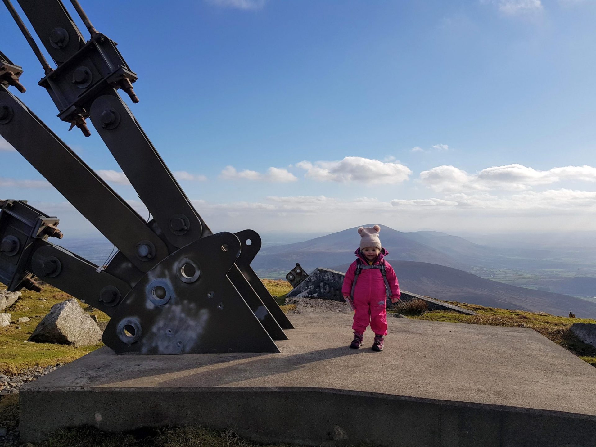 Slieve Coillte is opposite the JFK Arboretum. The access road to the top of Slieve Coillte has opening times but access to the top is free. The road is 3km long to the top and can be walked or drove. There are a number of stopping and viewing points along the way to the top. At the top, there are nice loop walks around the summit along with a 1798 memorial and a trig point. Sliabh Coillte has stunning views and is a great starter high point to get young children interested in walking and hiking.