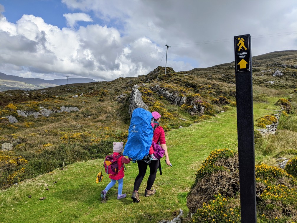 After crossing the last stile the road stops and we start walking uphill on a dirt path following signs for the “Beare way”. Good hiking boots will be required for this section.
