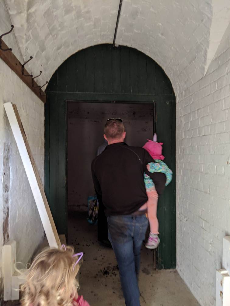Lonehort is fully surrounded by palisade fencing and a dry mote. Luckily, for us, Barry had keys for us to gain access and cross the bridge onto the barracks. We got a personal tour of the amazing guns, how they work and the restoration process. The kids loved the guns and roaming around the surrounding area.