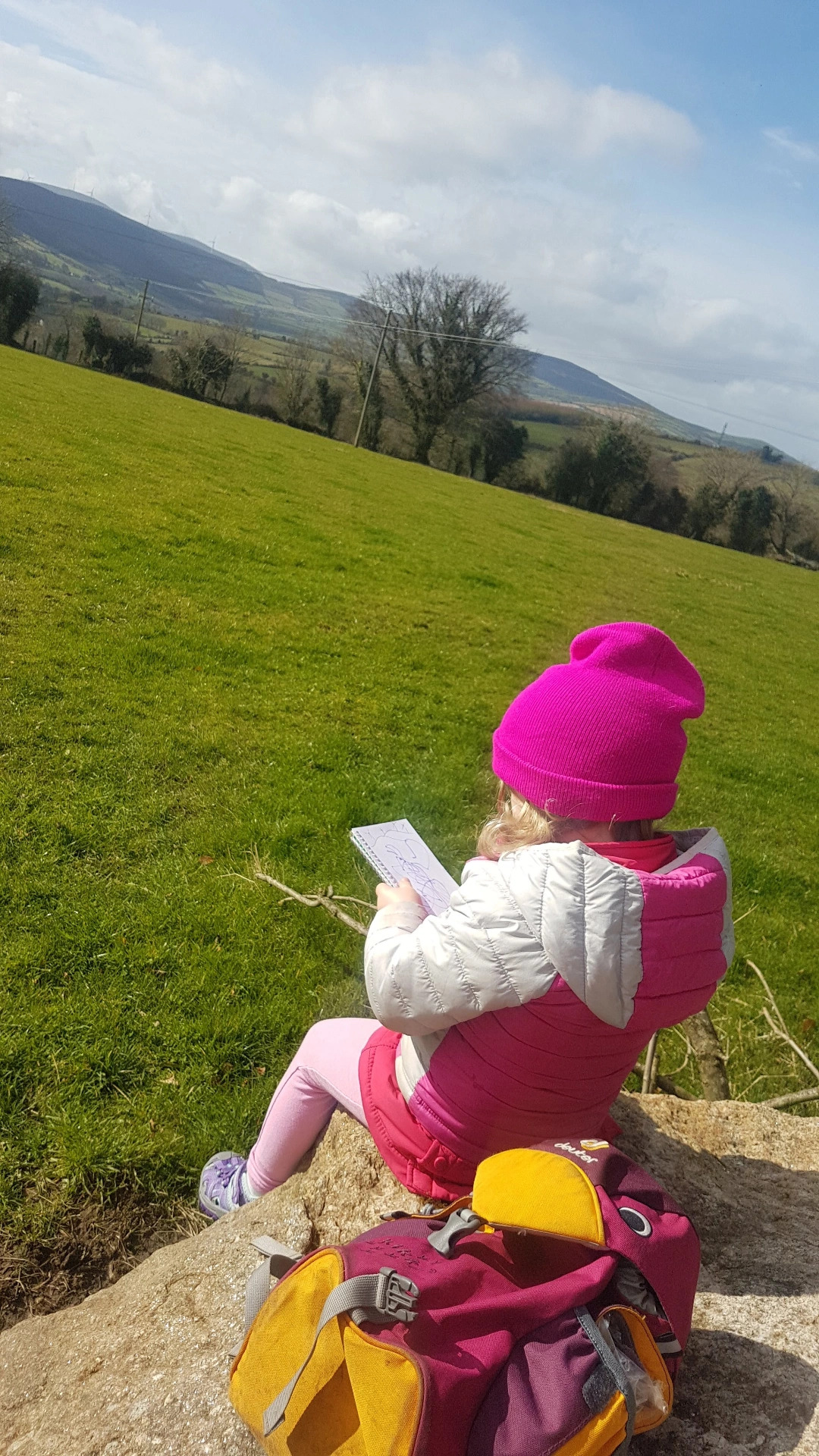 We let them empty out their hiking bags to look at the treasures, that they collected along their hike and sometimes I pull out a little notebook and pen to let them draw their favorite things that they have seen along the hike. When all of the above fails, I walk and feed at the same time.