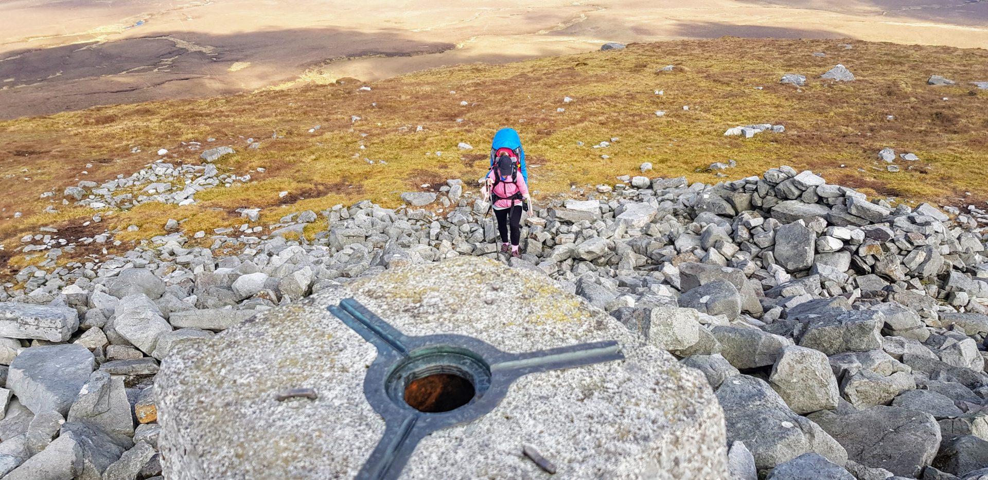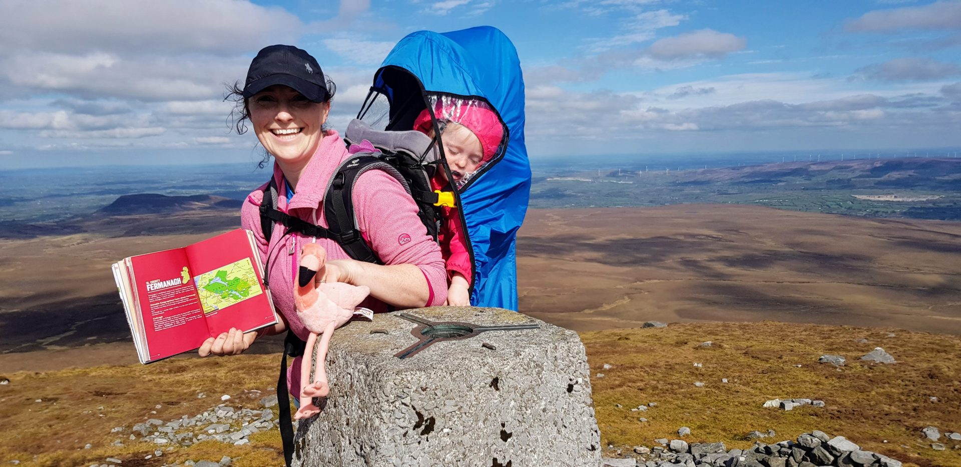 At the top of Cuilacagh Cavan and Fermanagh high point, Ourlittlehiker was trying to get out of the hiking back, she was trying to stand up and take her arms out of the straps. We think that she had got a taste for walking and exploring for herself and wanted more. Unfortunately, the top of a mountain is not a place for a toddler to walk on their own so we re-adjusted her straps to keep her safe in her bag. She eventually saw the funny side of it after a small tantrum.