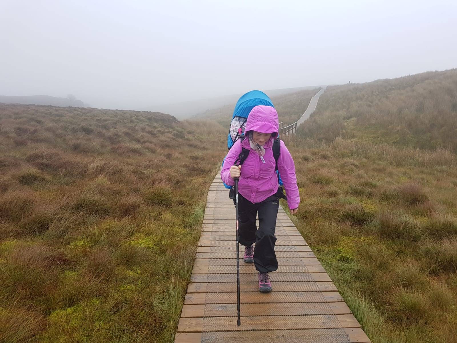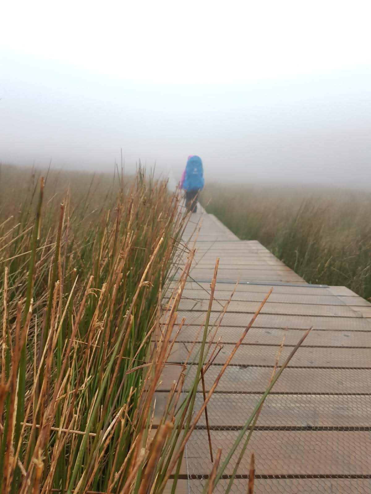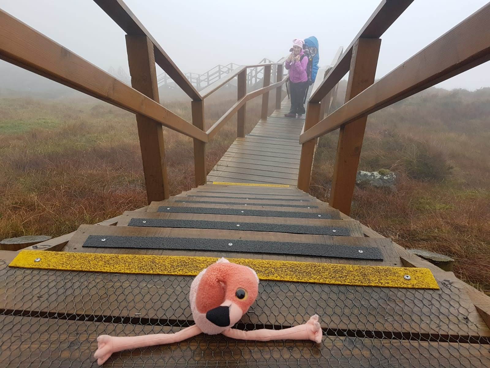 We eventually reached the top of the boardwalk and the fog had become even denser if that was possible. We knew we were within touching distance of the top but we just couldn’t take that chance with a baby on our back and such large cliffs all around the summit. We turned around without summiting Cavan and Fermanagh’s highest mountain but we really enjoyed the hike on this boardwalk hike which gathers such large crowds to see the stairway to heaven.
