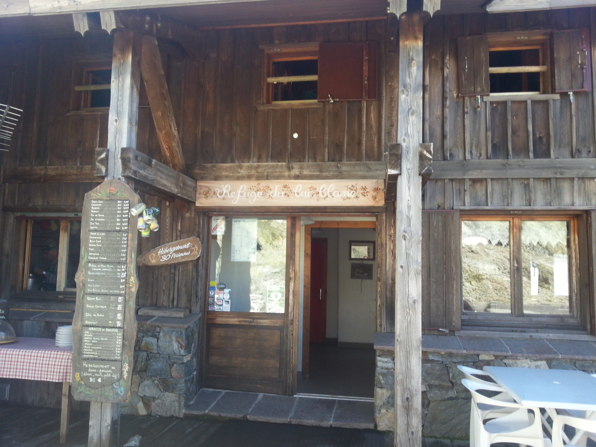 It took us 2 hours 20 minutes to reach Les Lacs des Chesery from the Tré le Champ. We still had some ladder sections and steep stepped sections ahead of us but nothing like the initial ladders. The first sight of Lac Blanc we saw was the hostel’s toilet building on the top edge of the mountain.