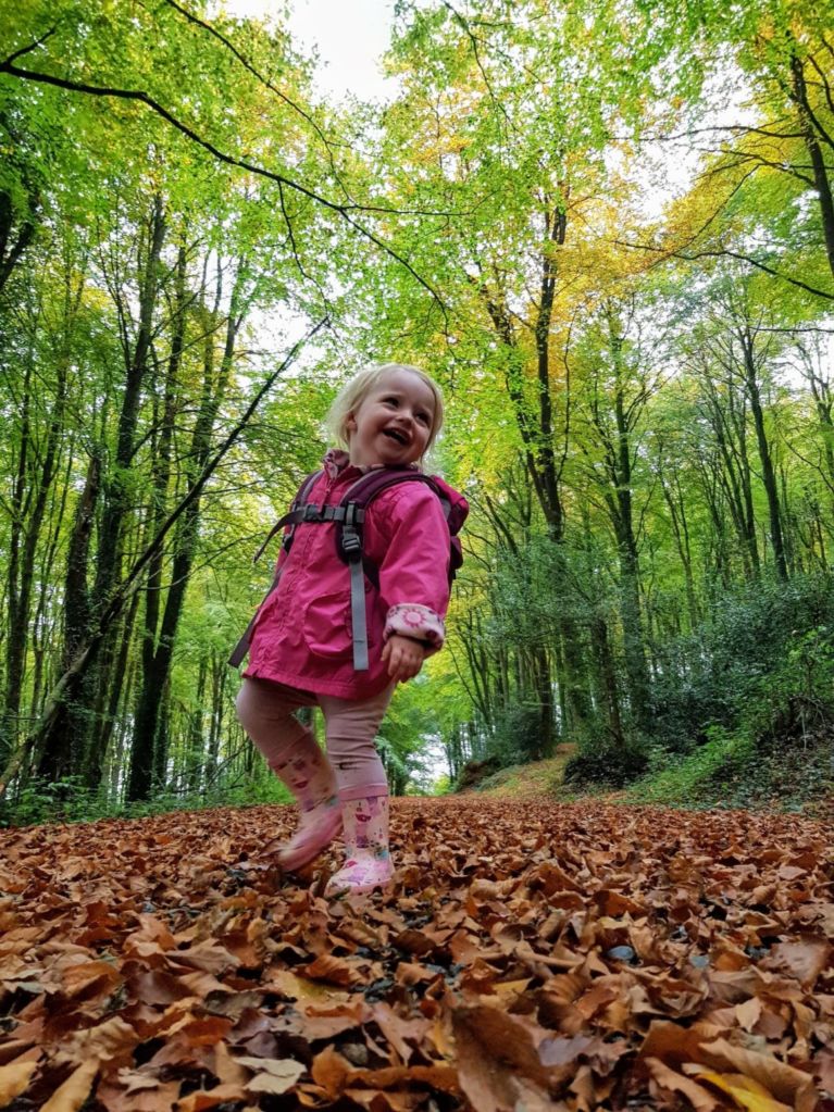 We followed the red arrow looped walk through the beech forest. As it is Autumn we were showered in fallen multicolour leaves, Ourlittlehiker was amazed by all the colours. She has become so independent lately and doesn’t want to be in her hiking bag as much anymore. We left her bag in the car for today. She loves hiking and walking and even insisted that we all have hiking sticks from fallen timber.