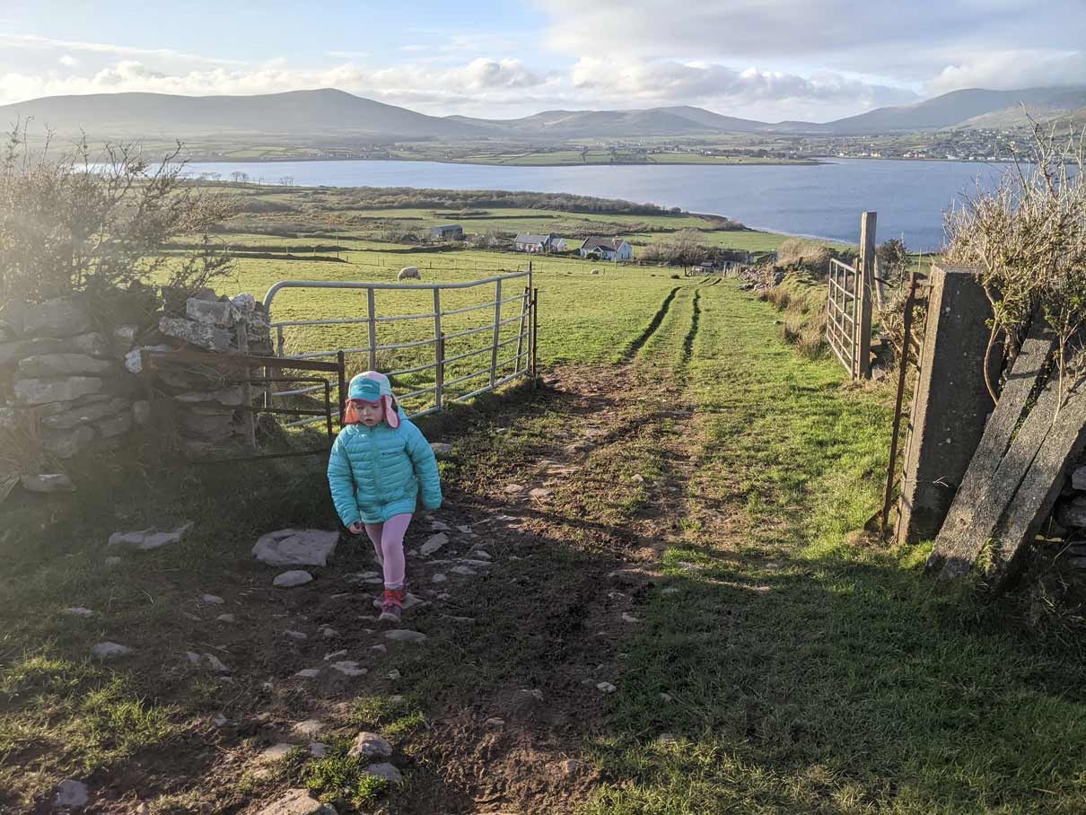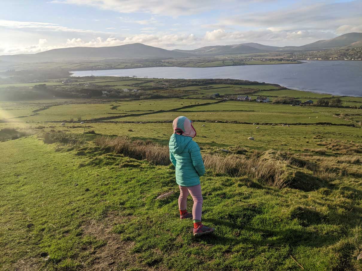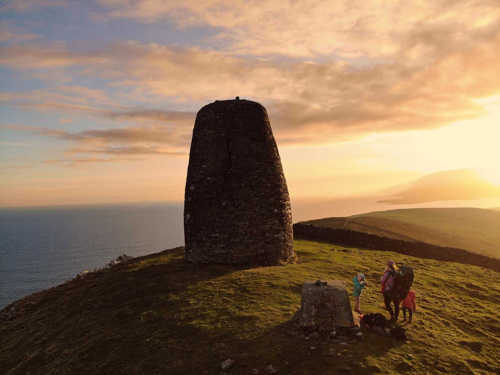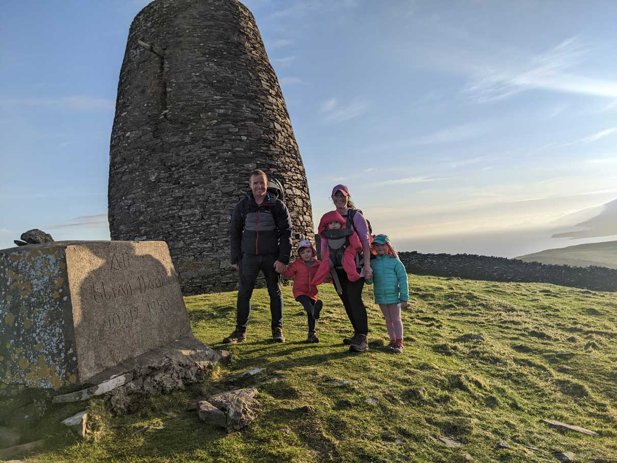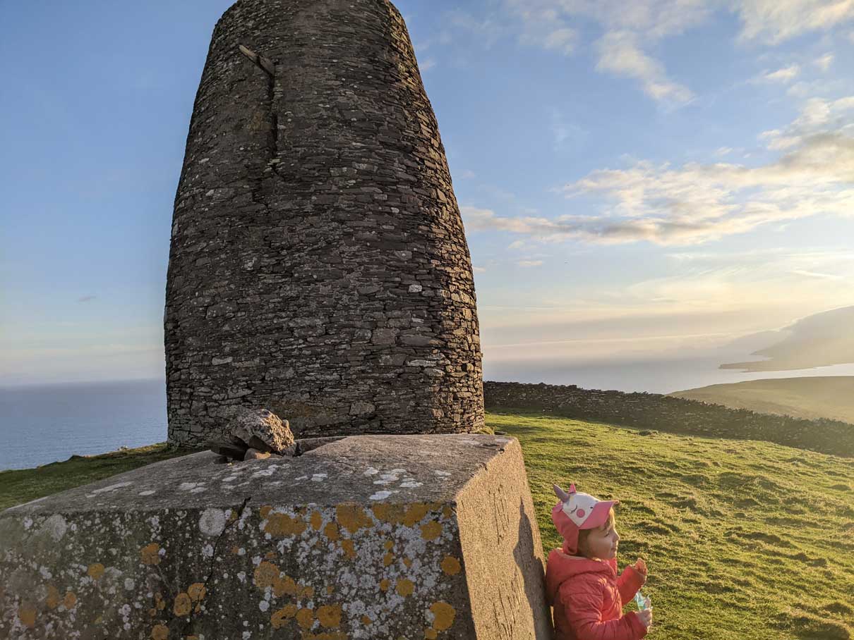 Eask Tower Dingle walk was on our Dingle itinerary, as a “must-do hike in Dingle”. The hike to Eask Tower is a short walk through a farmer’s field that gives amazing views and is family-friendly.