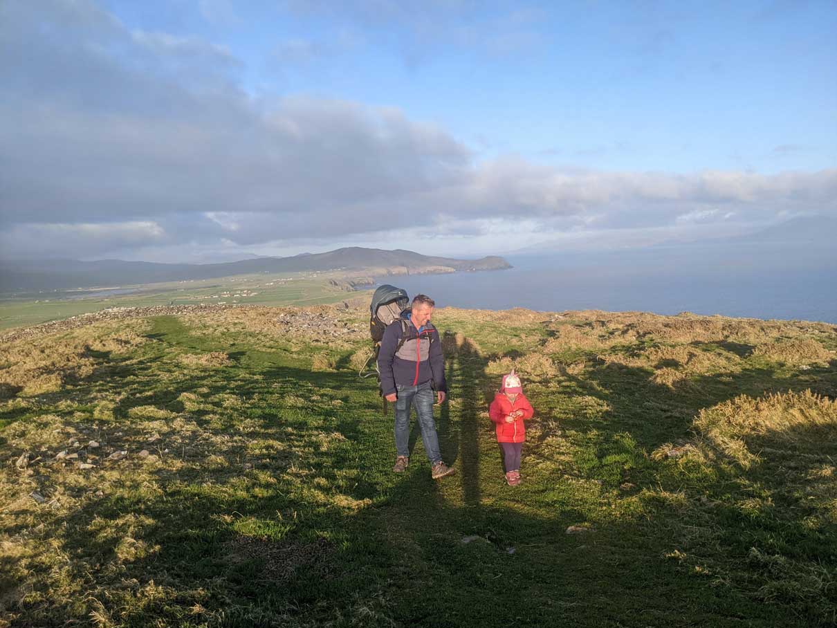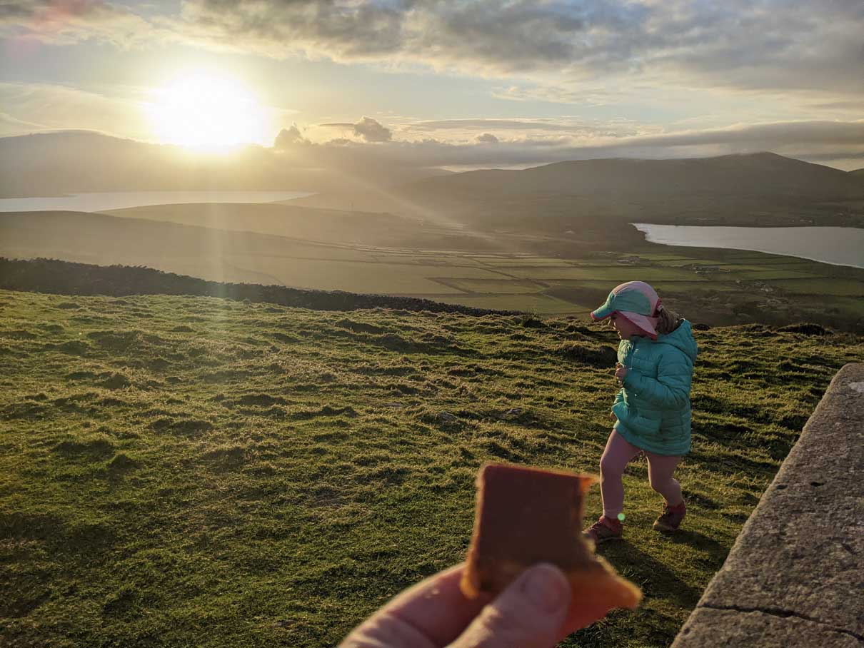 At the top, we relaxed and had a small picnic looking at the sunset over County Kerry and the Dingle peninsula.