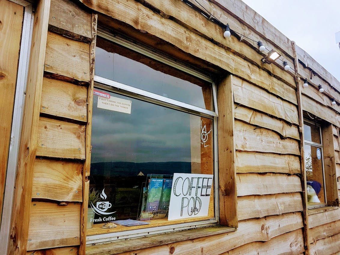 When arriving first, you see a vintage lime green campervan with their logo on it and also a large surfboard again with their logo. We were loving it already. You are greeted with an old school house, this is where the reception is but as we arrived late, 6:35 pm there was a sign on the door saying “Sorry they have been and gone and to follow the stones around to the coffee pod”. (Also just bear in mind that check-in is from 3pm-7pm and late check-in will cost an extra £10). I then went into the coffee pod, to be greeted by some super friendly staff. I had to sign a form about rules, for example, no music or loud noise after 11 pm and before 7 am which was a great idea and really suited us.