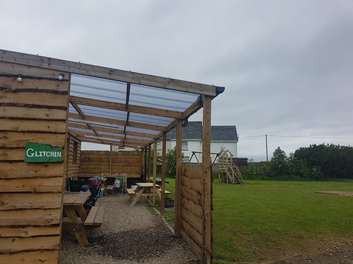 I was then given a tour of the campsite, the shower block, toilets and the Glitchen (where you had your own shelf in the fridge), cooking and eating area. If something has a Carrowmena logo sticker, this means that everyone can use theses items, like tea, coffee, milk and cereal (which was a nice touch). The staff guided us to our Bell tent along a little footpath, to one side was a sand pit, swing area and mini climbing wall, to the other side was a row of lovely timber frame huts. There was also an outdoor BBQ and eating area, which allowed parents to cook while also watching their children play on the swings.