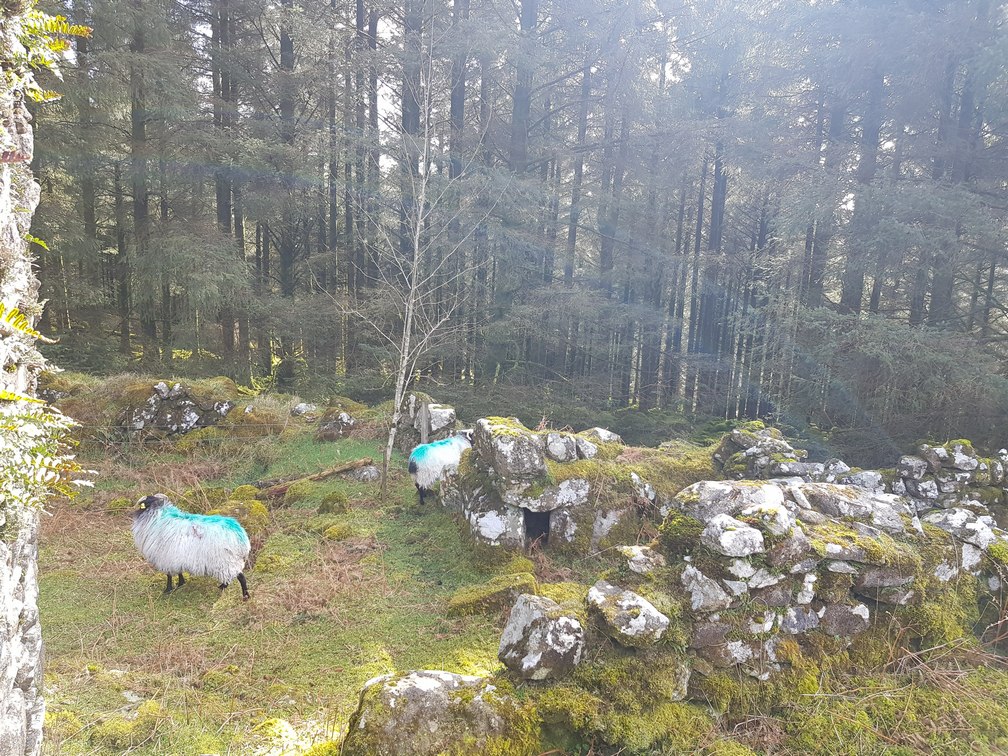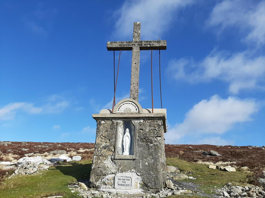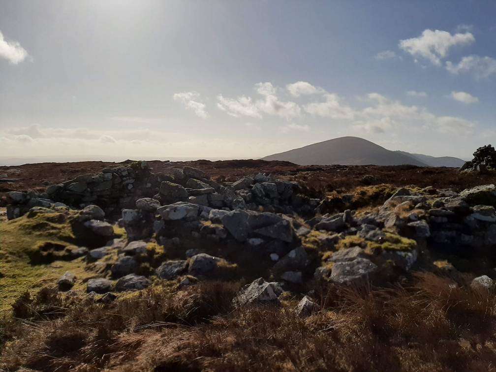 At the summit of Knockroe, there is a ruin of an old house/building. We briefly had a quick look around but continued our hike down to the Holy cross on the other side of the hill.