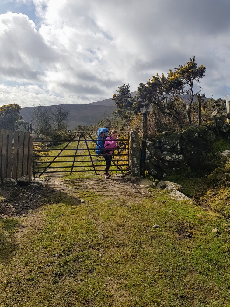 We eventually reach a pedestrian gate and start gaining in height. We walked sandwiched between two stone walls and the Blackstairs mountains start to become visible behind us the higher we walk.