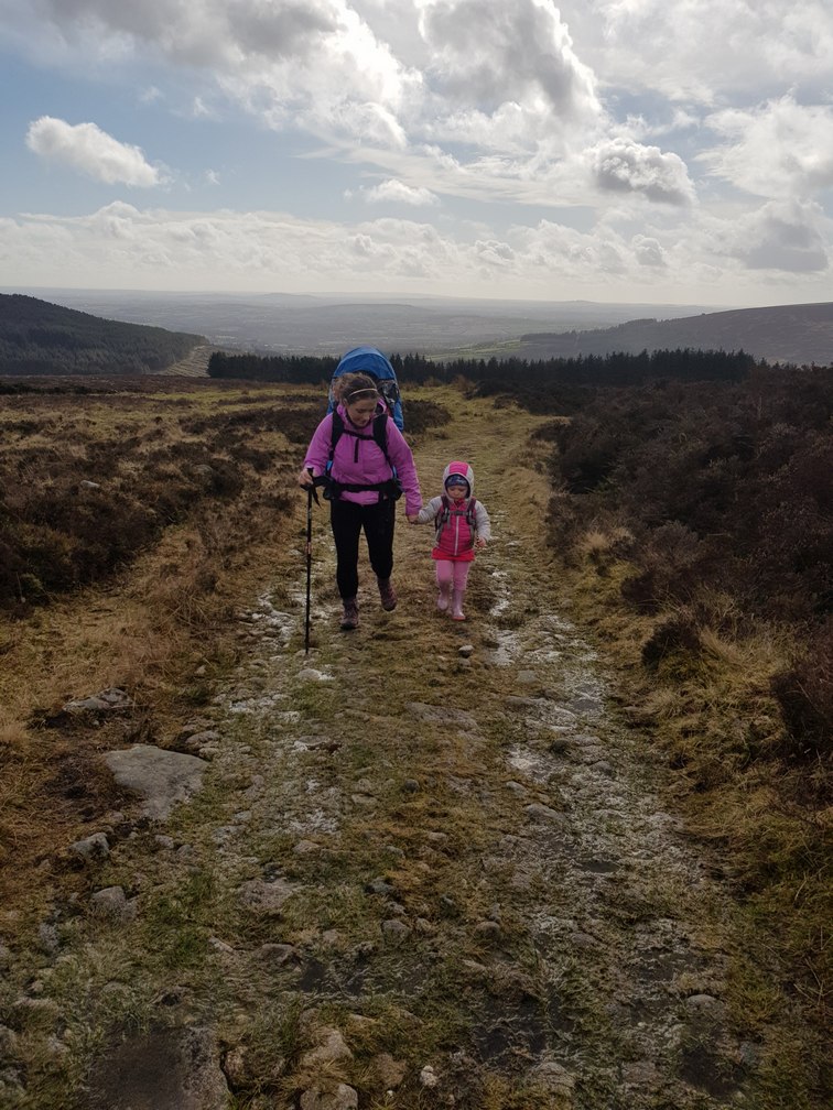 Our little family hike on Knockroe in County Carlow which borders County Wexford and the Blackstairs mountains. The mountain sits at a height of 540m and is overshadowed by its neighbour Mount Leinster. The hike can be started from Scullogue gap car park or from Mount Leinster/ the nine stones. The hike up Knokroe from Scullogue gap is 4km out and 4km back- 8km in total.