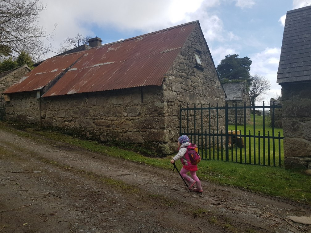 At the start of the forest, we reach another gate. After the gate, we are greeted with two very old abandoned stone cottages. Ourlittlehiker cannot understand why these houses have no roofs and why sheep are living in the house :)