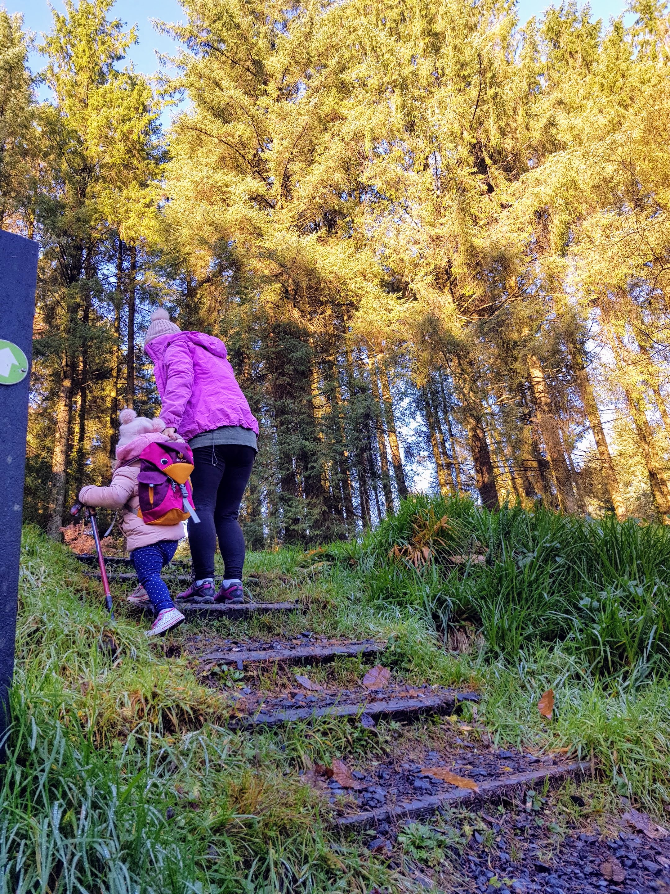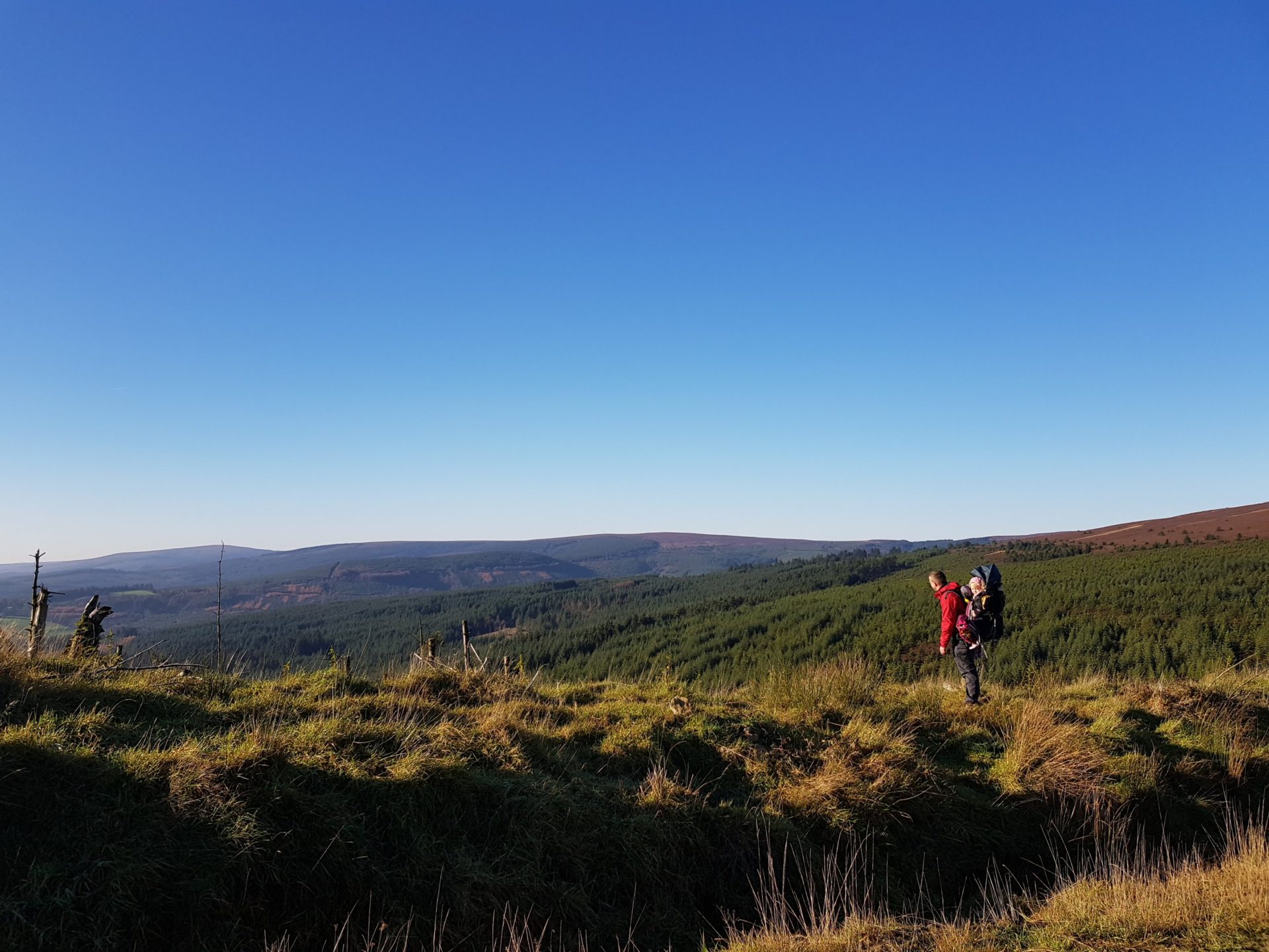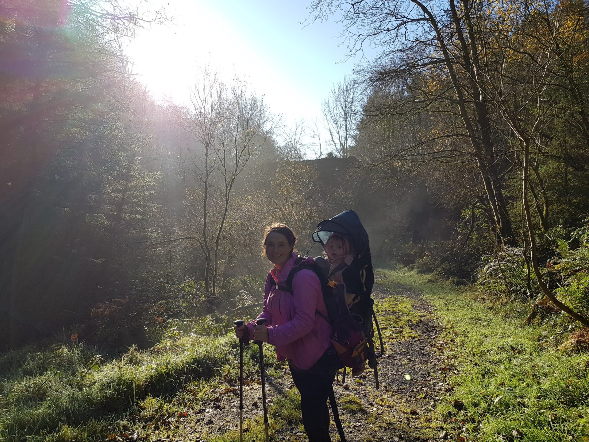 We got to Monicknew carpark nice and early, the sun was still very low and the area was still very quiet. When we were in the middle of the 32 peak challenge we became experts at getting out of the car and loading a baby into her hiking bag in minutes but we’ve become rusty and it took us considerably longer to pack our bags plus we forgot our spare hiking bag that carries Ourlittlehikers Toys and Snacks, We have become amateur baby hikers again, but luckily we didn’t forget the snacks, so that’s the most important thing, as it keeps both mammy and toddler happy on the hikes.