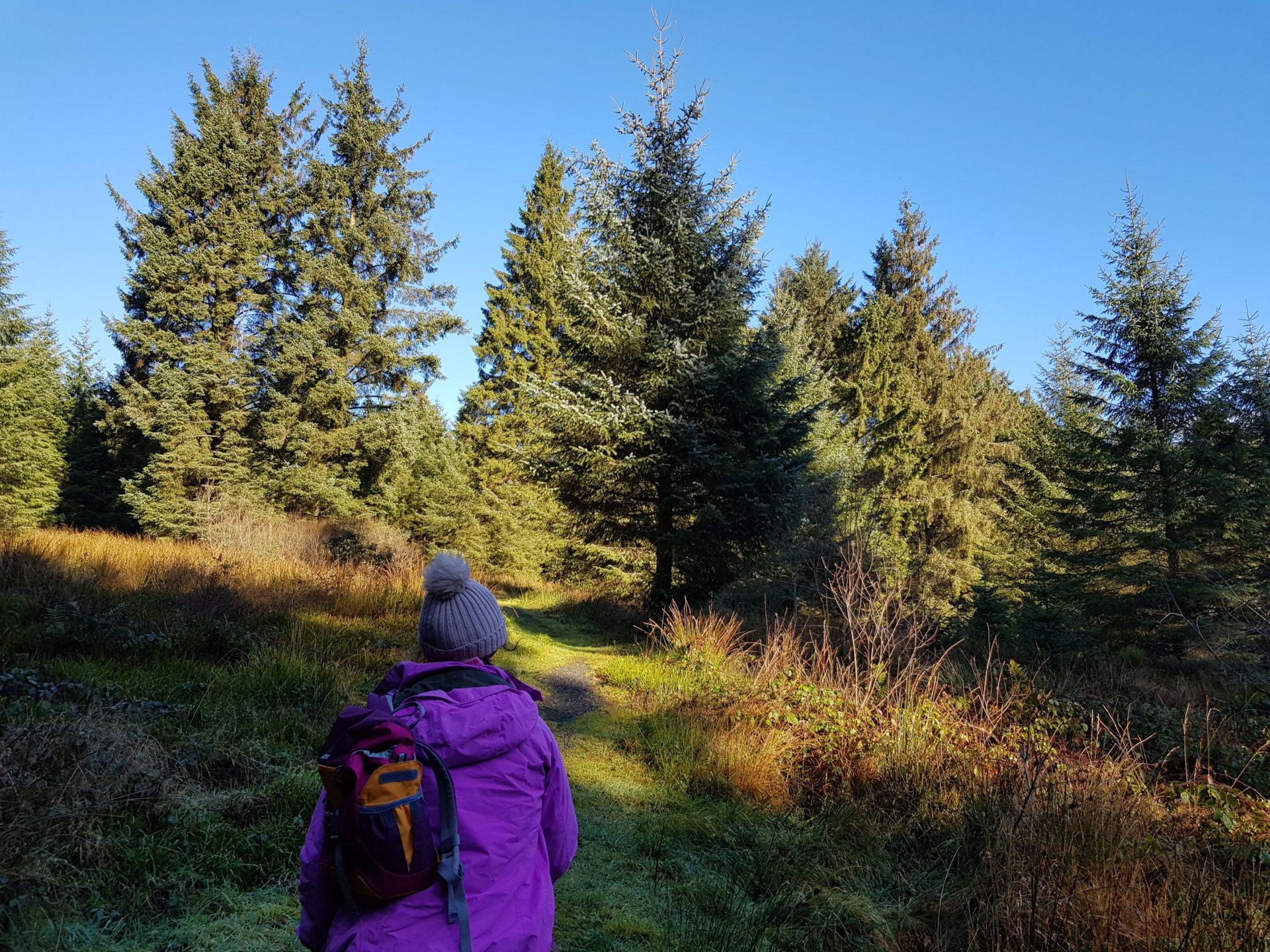 After we loaded our bags, we went to the information sign which is located at the rear of the carpark. We decided to hike the green loop walk which was only 3.5km long. The walk starts beside the sign and cuts up through the wood between a passage of mature pine trees. The trail then leads its way through smaller wood trails until we reached a larger lorry road leading upward.