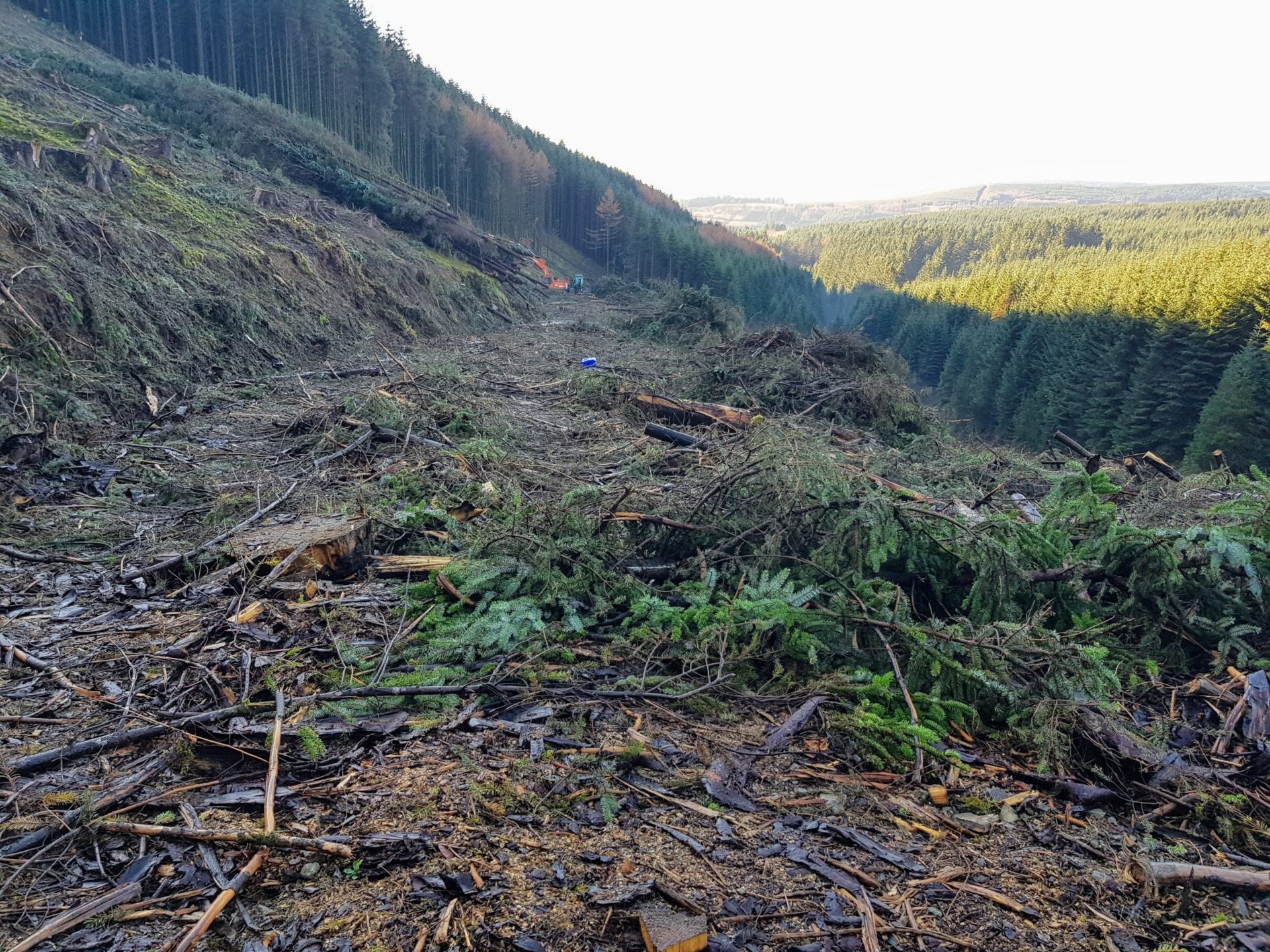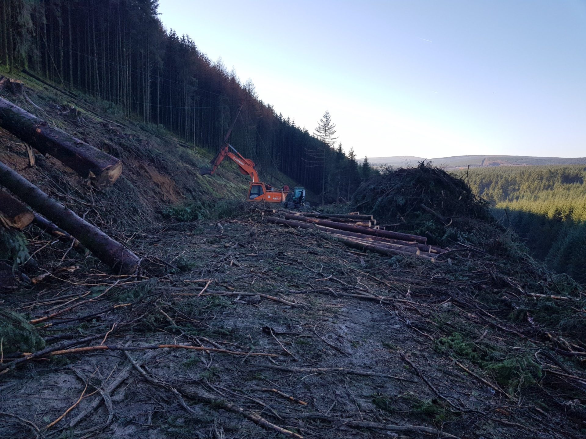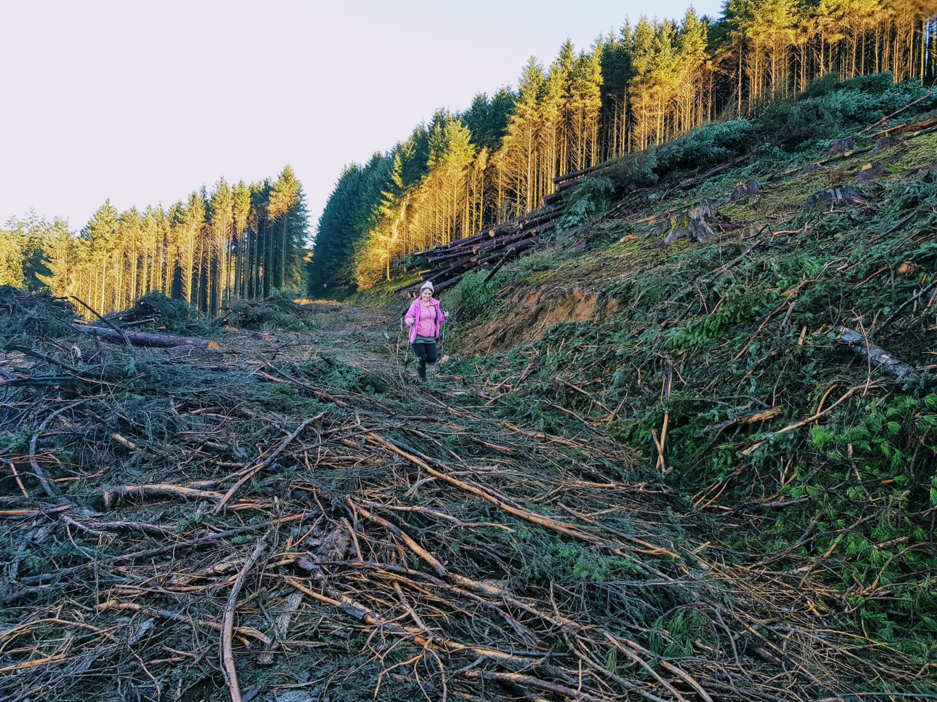 Unfortunately, halfway back down the road we encountered a sign saying that the road was closed, now at this point, we are 3/4 of the way around the loop, are we expected to turn around here? We could see that the road was closed because they were cutting down the forest but seeing as it was a Sunday we kept on walking as all the machines were parked up and everything looked safe to pass.