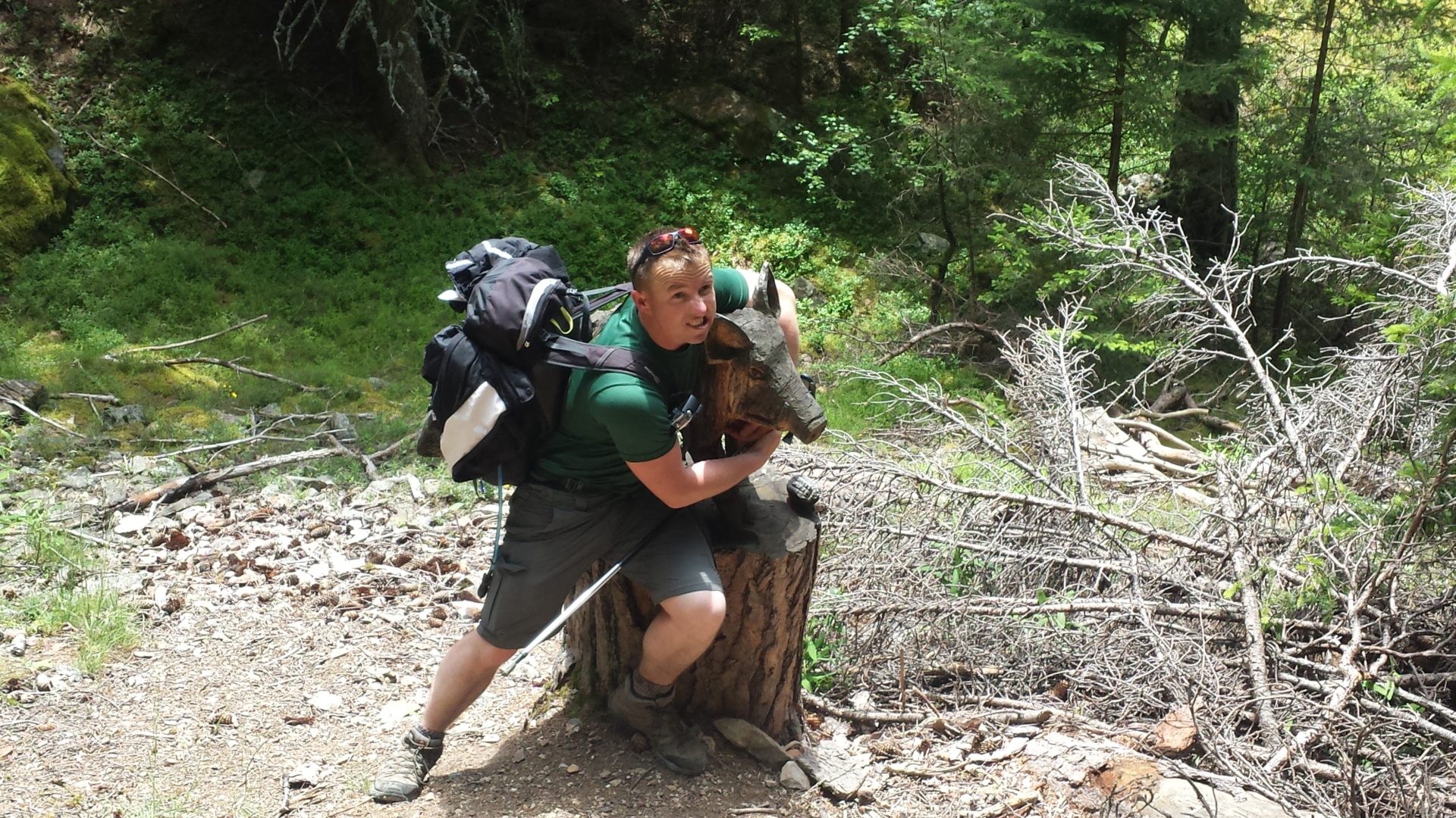 This was possibly the hardest section of day 6, the trial cut through a wooded area from the valley up to Champex. It was an enjoyable section, it was full of wood carvings of animals from beavers to goats and pigs.