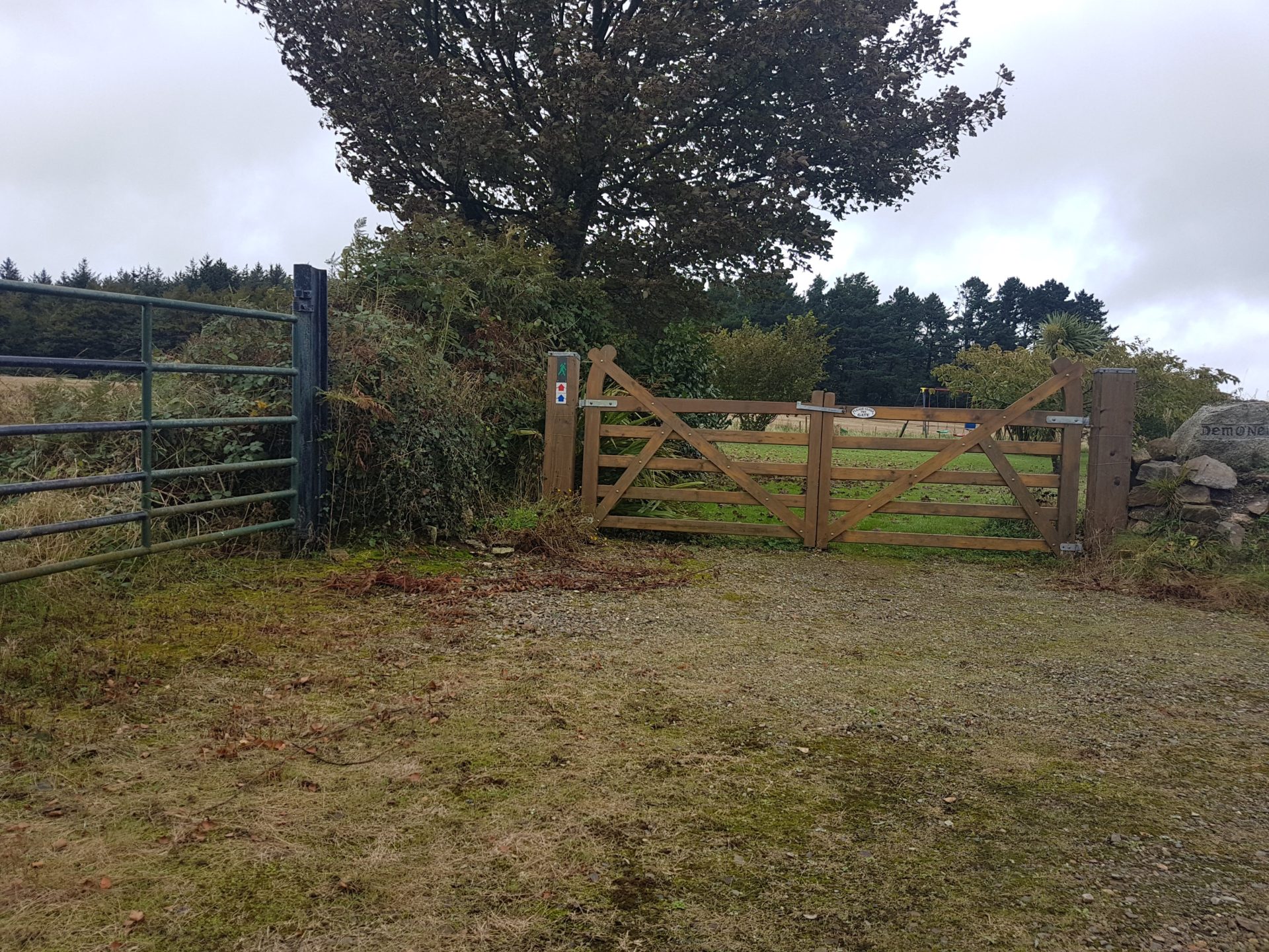 The path is signposted and it cuts between a grass ditch and a field. The trail provides great panoramic viewing points with information signs detailing hills and historic locations in the distance, this is great for people that are not from the area.