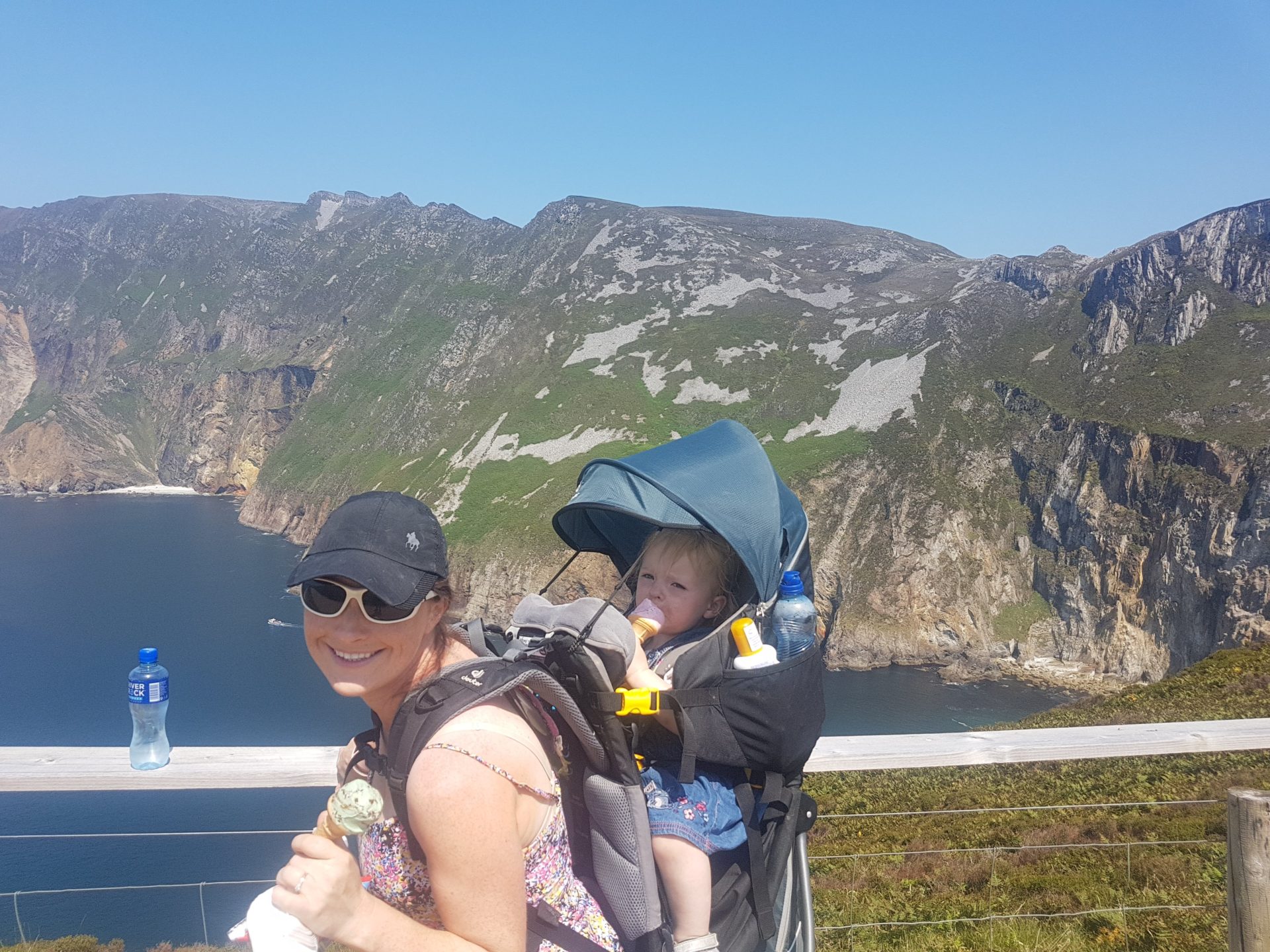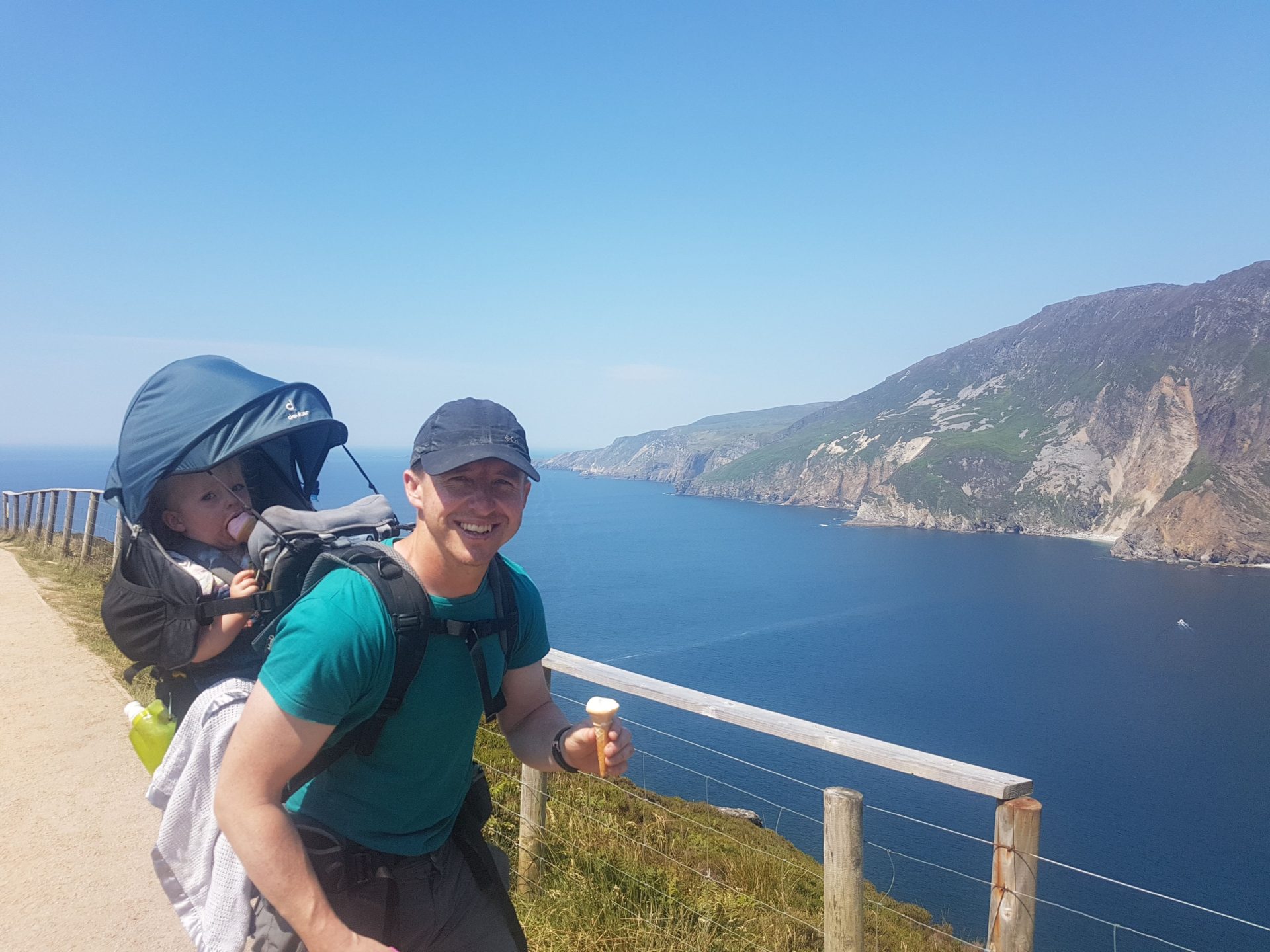 On our walk up to Slieve League, it became very obvious that there was an ice cream shop at the viewing point. The knowledge of ice cream spurred us on to reach the top of the road. When we reached the viewing point we all got some ice creams and admired the outstanding cliff views of Slive League. Gina and Ourlittlehiker were loving the ice cream and they disappeared very quickly with the 30-degree heat overhead.
