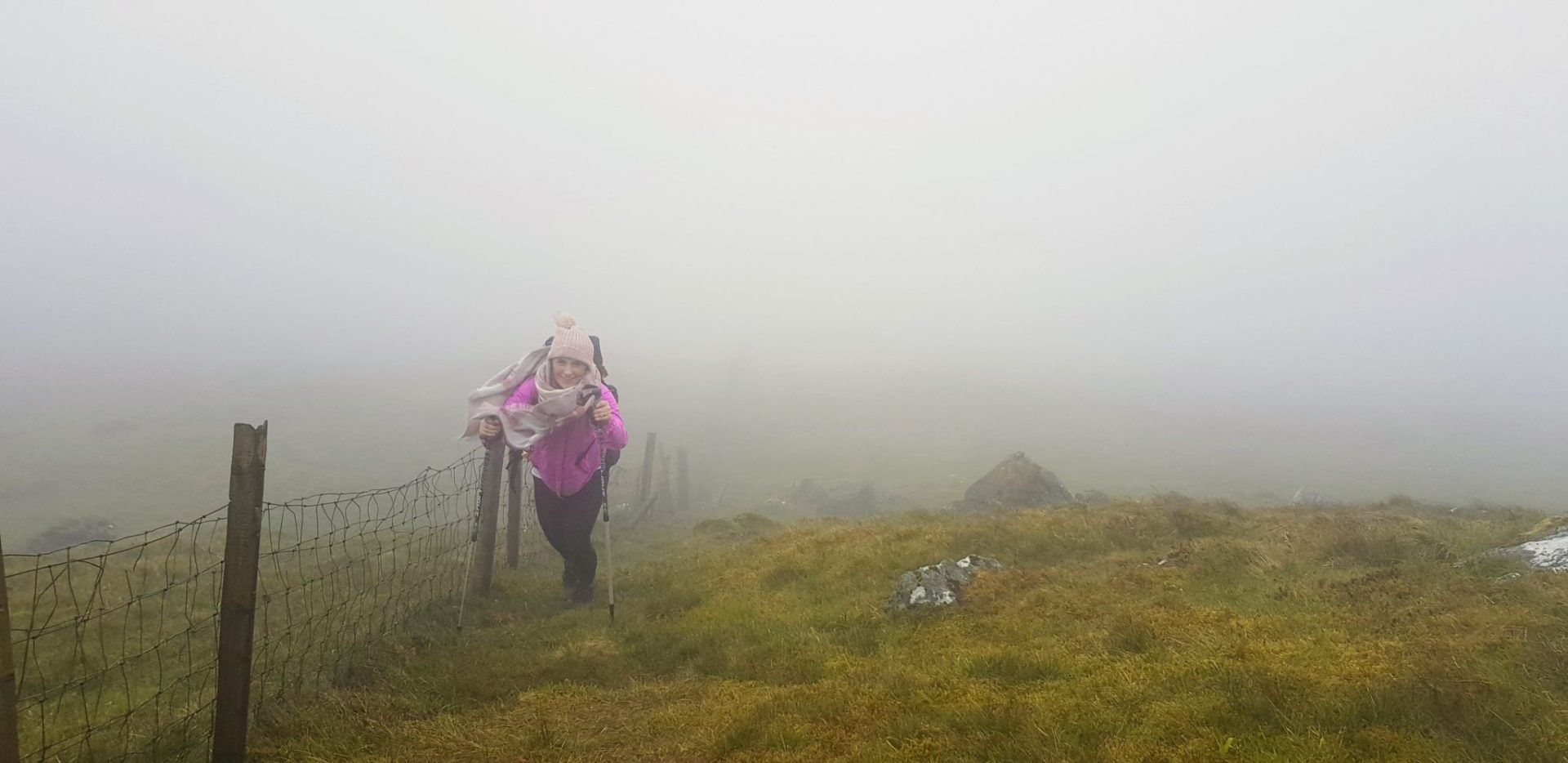 This was our first experience of hiking in fog with our daughter and we felt perfectly safe throughout the whole hike. This was a good tester for the fog as we had the fence as our guide to the summit of Sawel mountain.