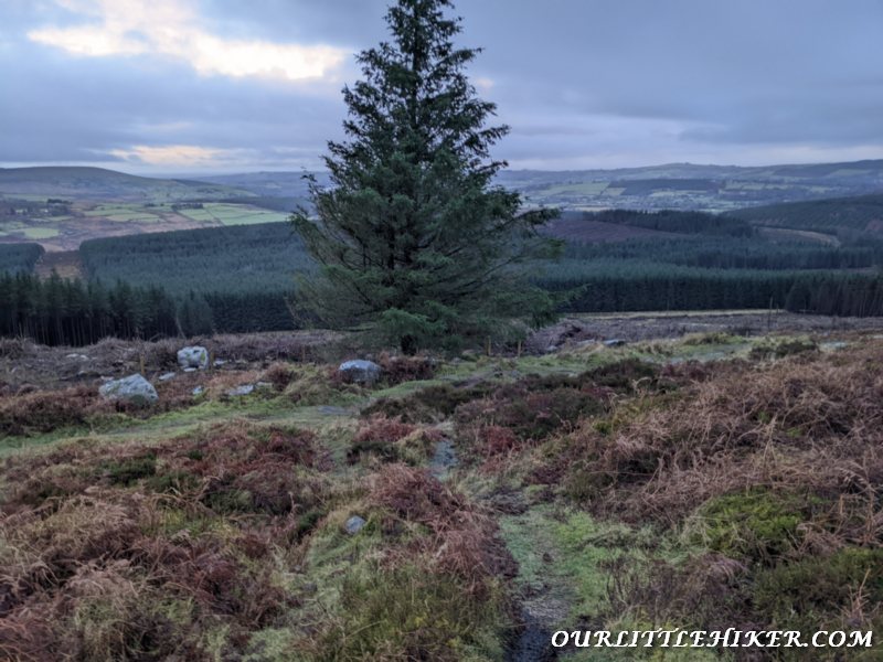 The walk starts beside the car park. Follow the trail up the side of the forest. The path is very clear to follow and walk along beside the fence for about 500m. The trail then splits and you need to turn left and walk up toward the summit.