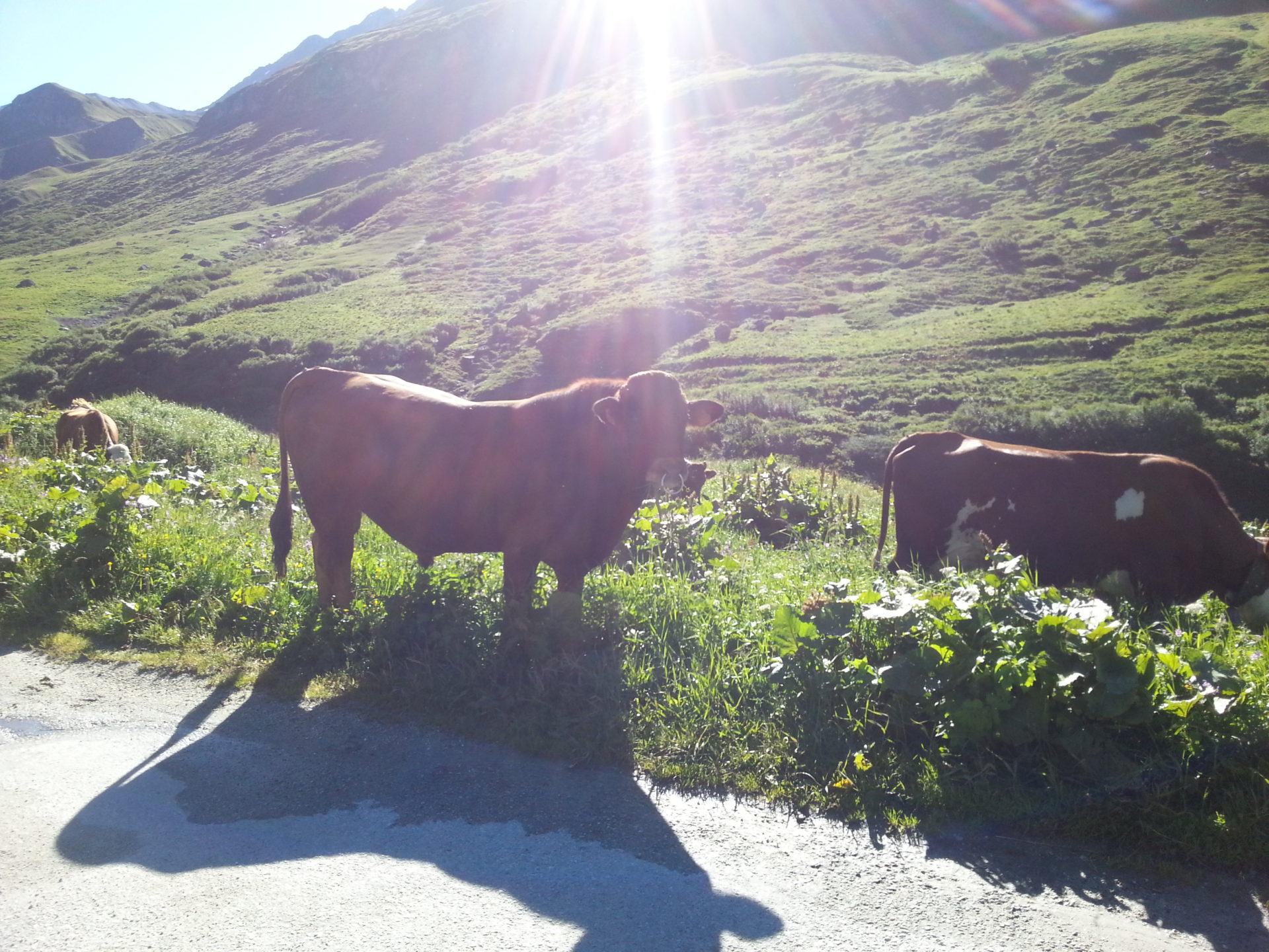 The road cuts through the edge of the mountain to one side, the road starts to lead into a small area with houses and LOTS of cows. We were bravely walking through the group of cows being lead down the road by a farmer, when we spotted a bull in the middle of the cows, we froze immediately but thankfully the bull kept on walking, I don’t think he cared because he had all his women around him. Scary stuff though.
