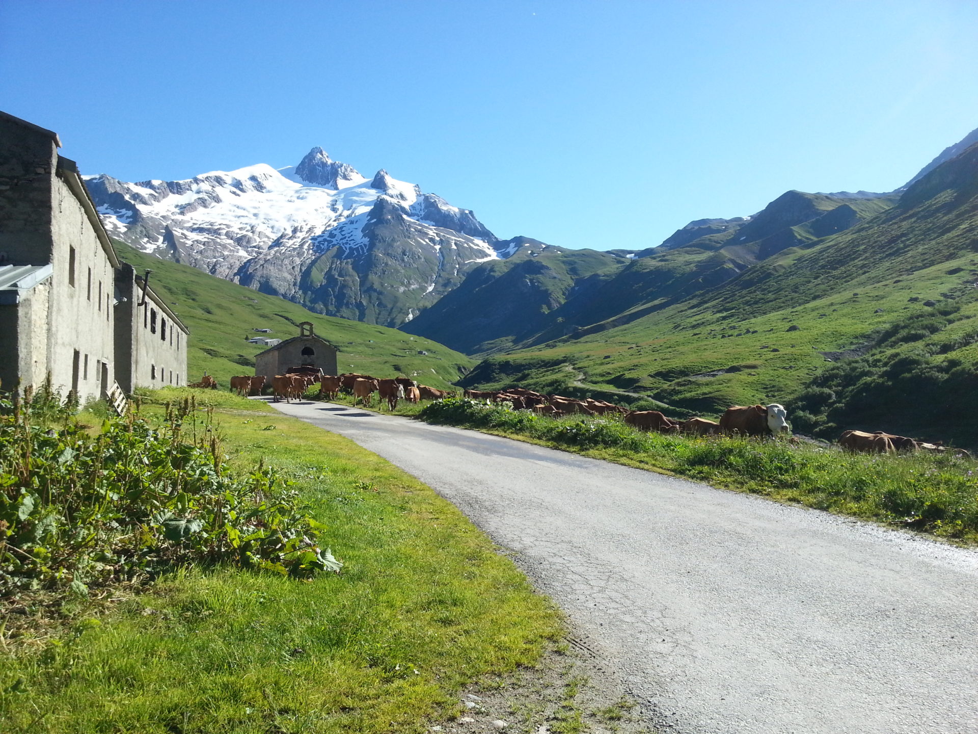 The road walk from Les Chapieux to the end of the road was about 3-4kms long. Care should be taken here as tour operators seem to offer a service to drop people to the end of the road in minibuses. The minibus driver didn’t seem to care too much for the people walking the road as they never slowed down for us. The people in the minibus didn’t realise that they were missing some amazing sights, we even walked through the middle of a farm that was moving their cows.