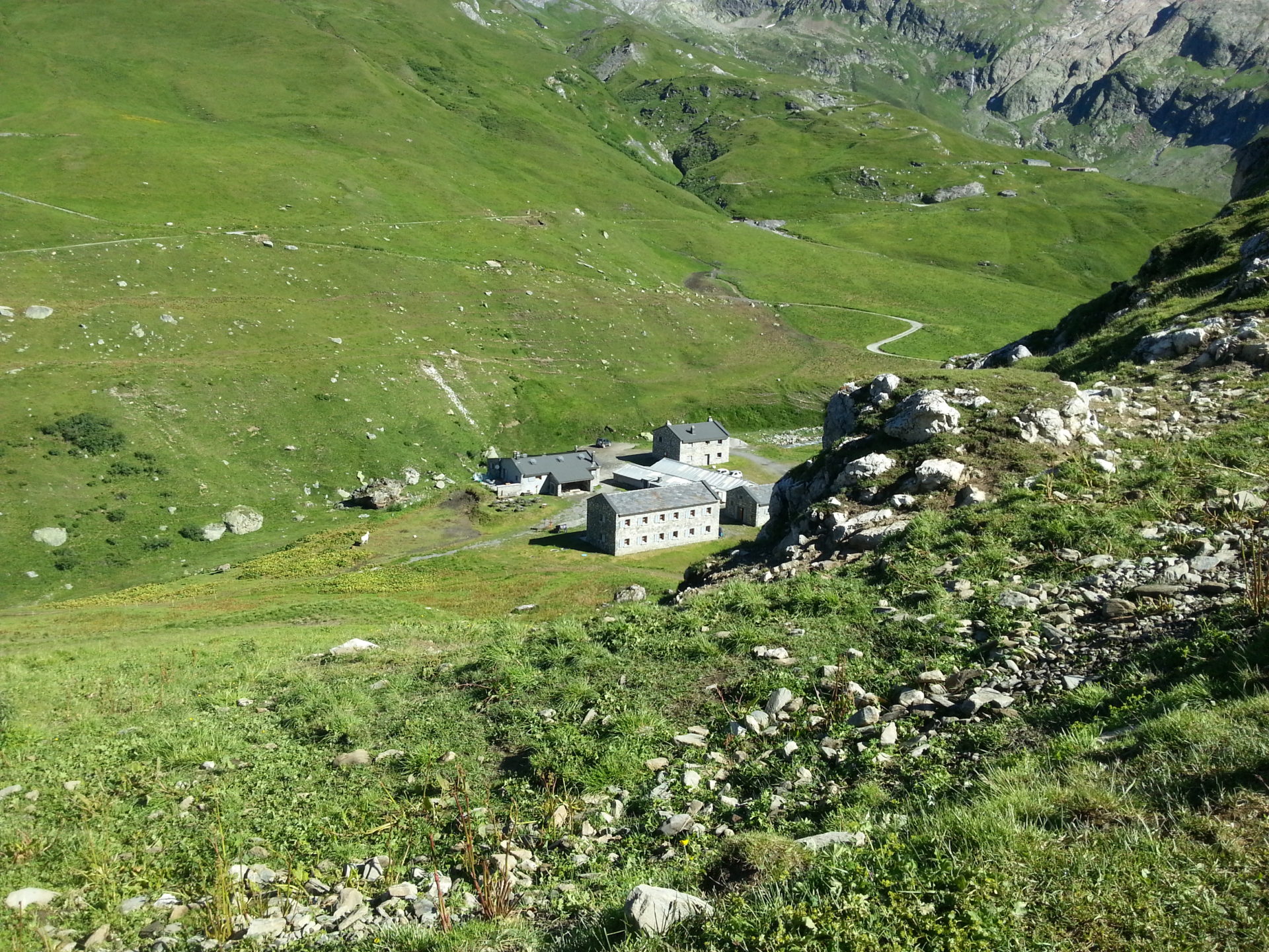 The trail seems to skirt around the Rifugio but we are so tired now that we decided to walk down the middle of the meadow. When we walked into the Rifugio we saw some French people that we had met along the trail over the last few days, needless to say, we were maybe 20-30 years younger than most of them and we think they were here 1-2 hours here before us (these walkers were hardcore and needed to be admired).
