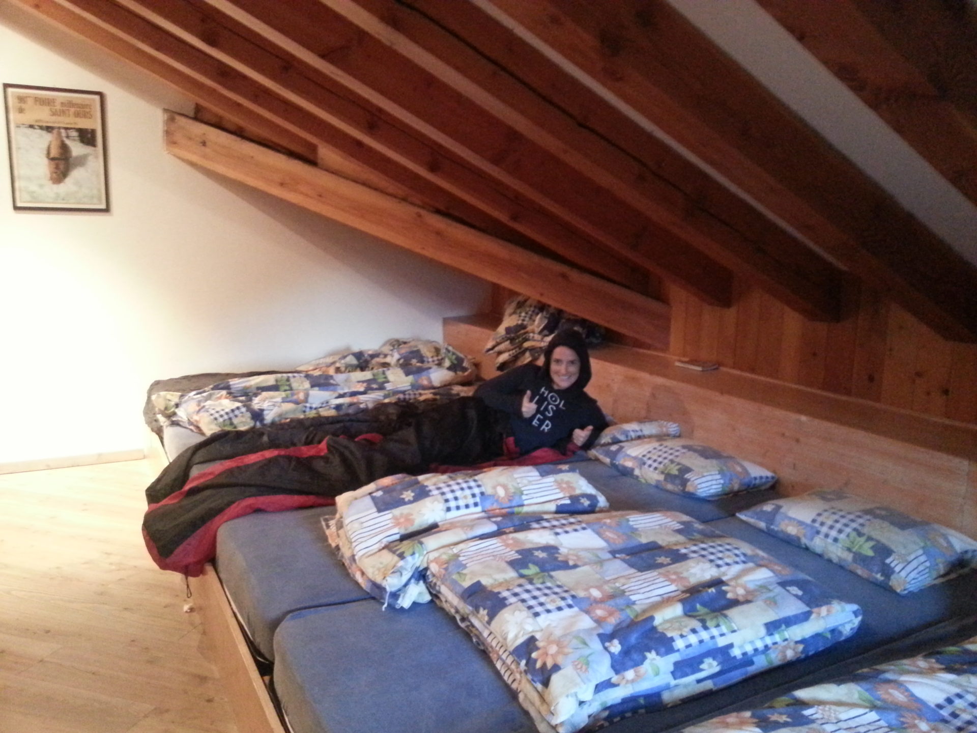 As we got to Rifugio Bonatti reasonably early, we unpacked our bags in our dorm room and to our surprise, our beds were one continues mattress that sleeps 6 people. We asked could we take a wall section of the mattress but our host told us that these were reserved already. So try ring in advance and reserve a window or corner of the mattress.